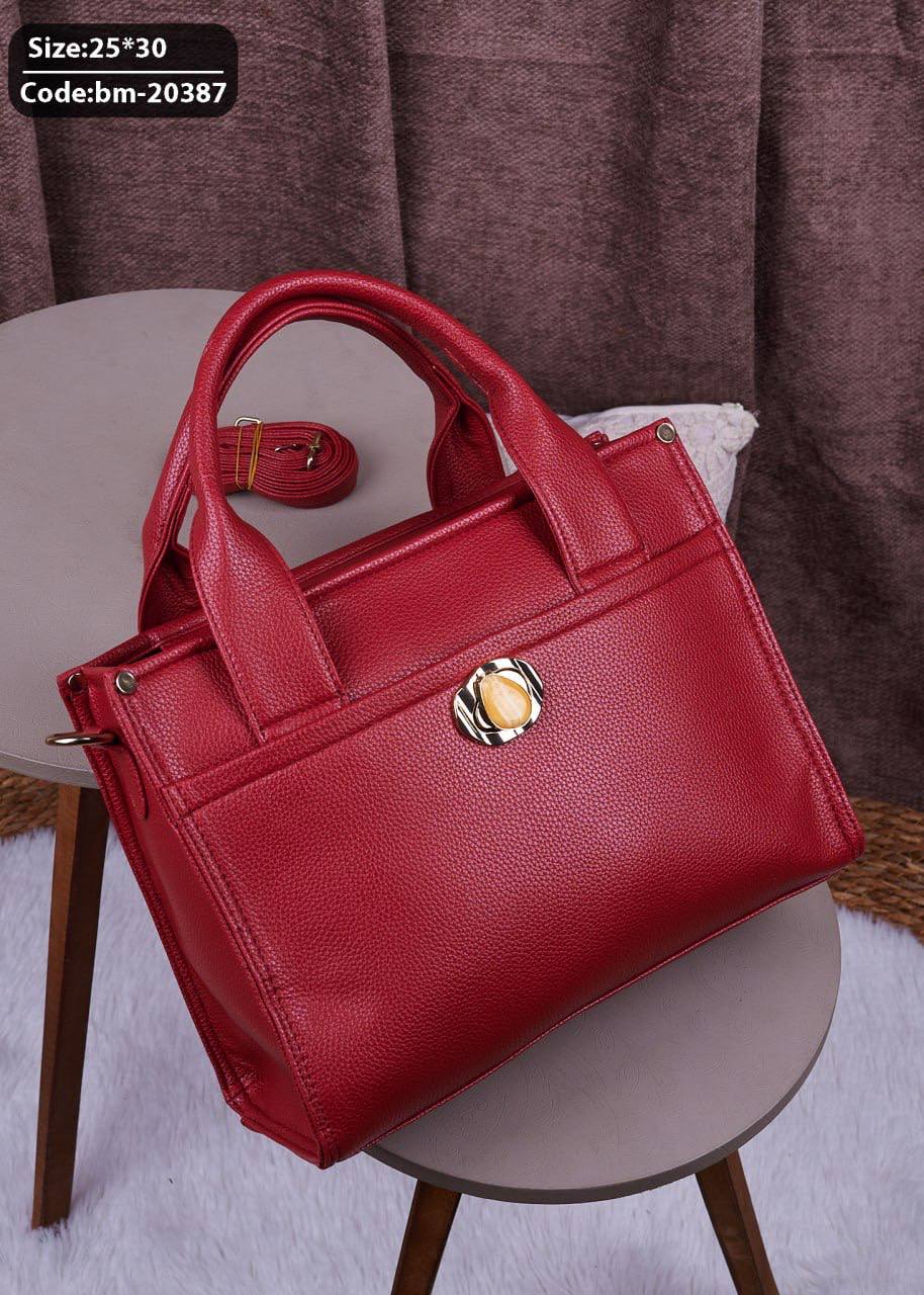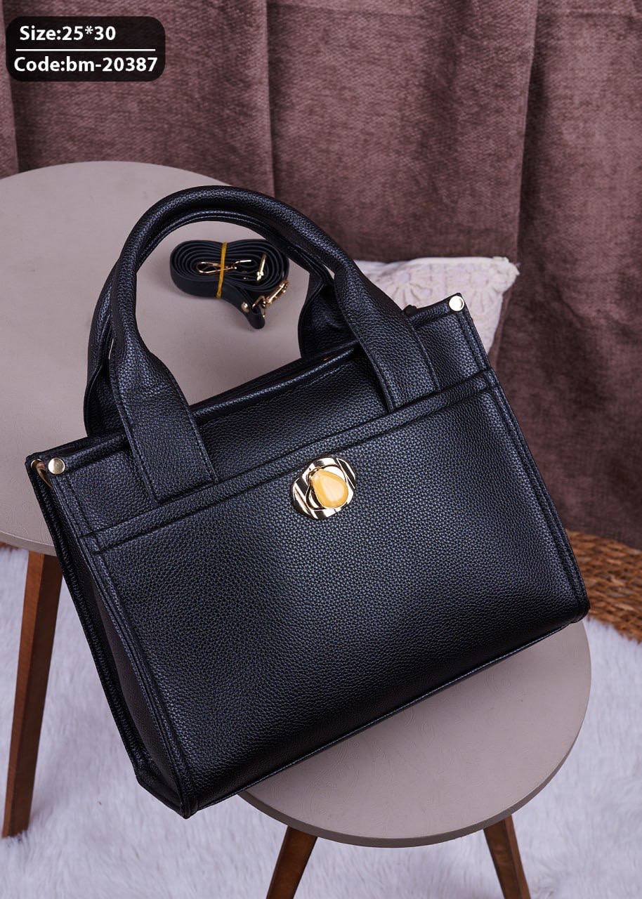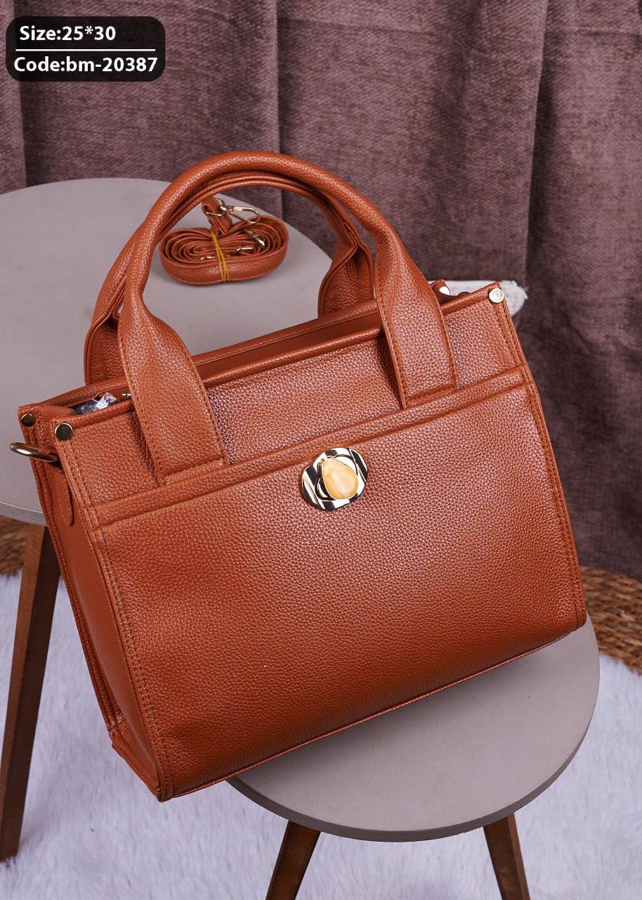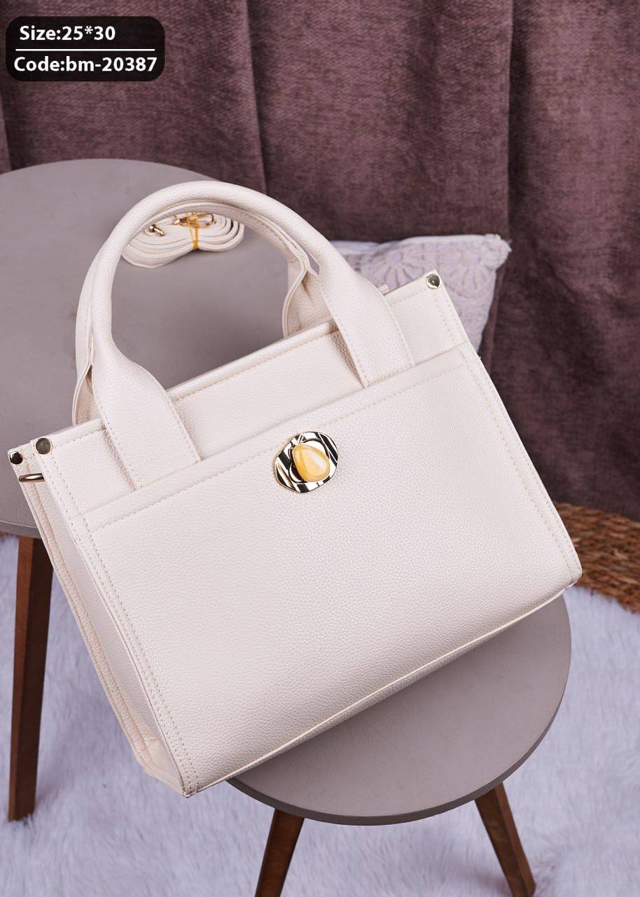 Elevate your everyday style with this classic, versatile handbag. Designed with a textured, premium-feel finish, it features elegant gold-tone hardware and a chic statement closure with a warm, amber-like accent. The bag is designed for versatility, including sturdy top handles for a classic tote look, as well as a detachable, adjustable strap for hands-free crossbody or shoulder wear.